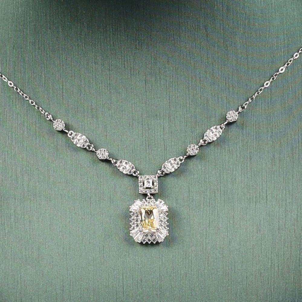 طقم "شروق" – فضة 925 احتضني لحظة الشروق بكل بريقها وجمالها مع طقم "شروق" المصنوع من فضة عيار 925 والمزيّن بحجر أصفر مشرق يحيط به إطار متقن من الزركون الأبيض المتلألئ.